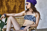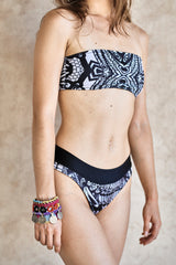Bandeau Bathing Suit MALLORCA Black & White Peacock Design