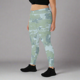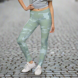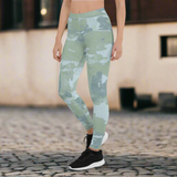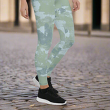 Elevate your workout wardrobe with these green camouflage yoga leggings that offer both style and functionality. Ideal for yoga sessions, gym workouts, or casual wear, these leggings provide a comfortable fit and trendy design. Add a touch of flair to your activewear collection with these versatile leggings.
