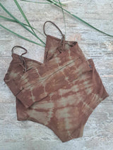 Perfect for yoga, swimming, or lounging, this high-waisted boho swimsuit is a unique artisan piece, dyed with natural colors. A thoughtful gift or vacation essential!